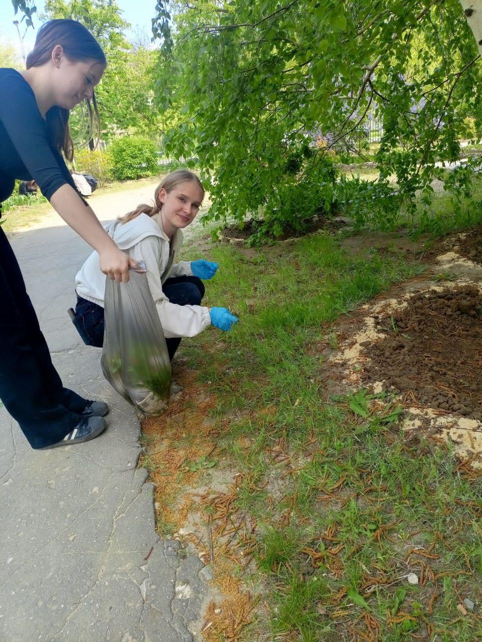 Были проведены следующие работы: уборка бытового мусора, прошлогодней листвы, побелка деревьев, высадка цветов, опиловка деревьев.